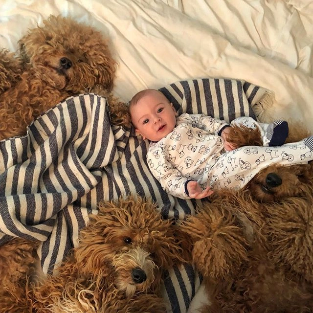 Шестимесячный малыш Тео из американского города Уэстпорт в штате Коннектикут окружен собаками с самого рождения. Однажды мама ребенка даже пошутила, что ее сын так близок с питомцами, поэтому, наверное, думает, что он тоже собака.