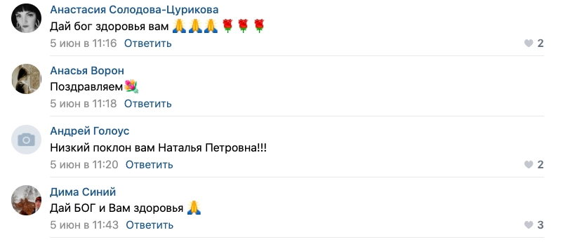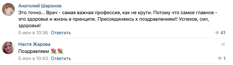 Сама же именинница признается, что выполняет свою работу — и не чувствует себя героем: «Как можно чувствовать героем, если каждый день у меня пациенты, и я боюсь фиаско. О геройстве даже не думаешь, думаешь о том, что, слава богу, этот живой, этому лучше стало».