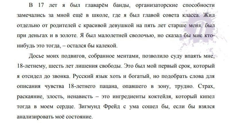 Если верить его книге, свой первый срок он получил в 18 лет, мужчина освободился через шесть лет. В 17 лет мужчина, назвавший себя Максим Плохой, был главарем банды, жил красивой жизнью и не нуждался в деньгах. В книге «Философия преступника» сказано, что его мать работает учительницей русского языка, также у него есть сын.