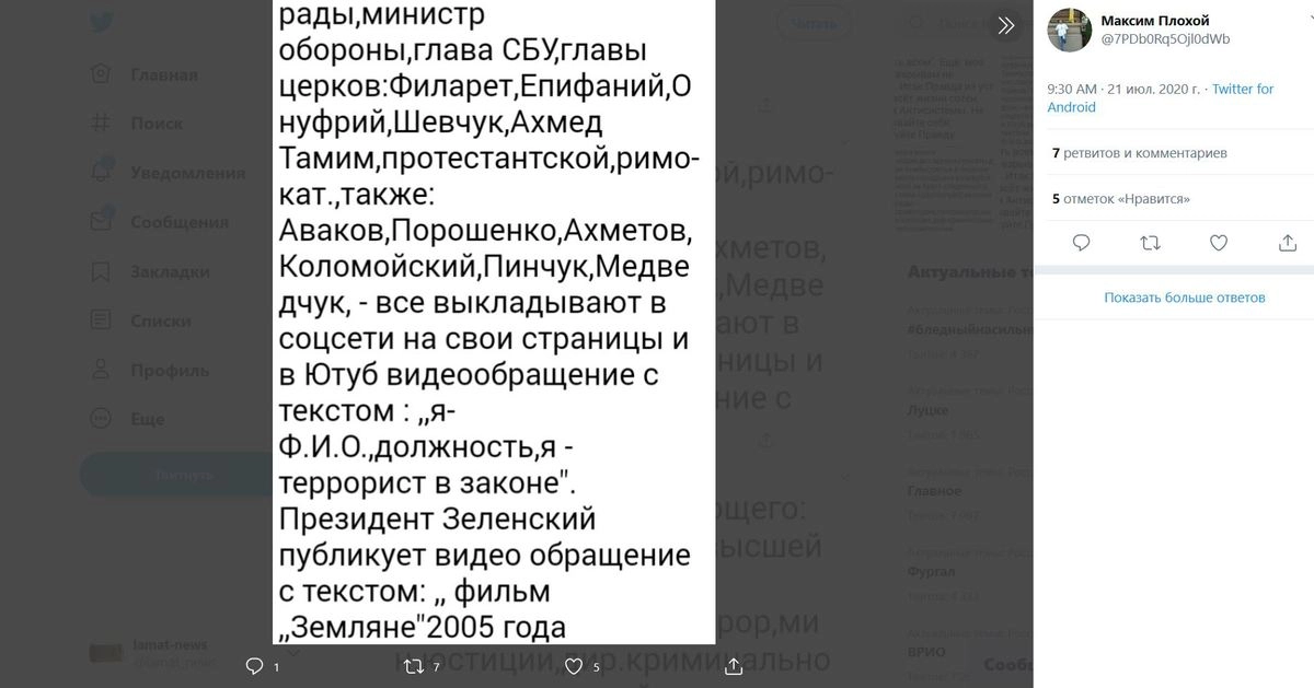 Ранее стали известны требования злоумышленника, захватившего автобус с людьми. В своем Twitter он писал, что хочет, чтобы министр внутренних дел Арсен Аваков и бывший глава государства Петр Порошенко сняли видео, в котором признают себя «террористами в законе».