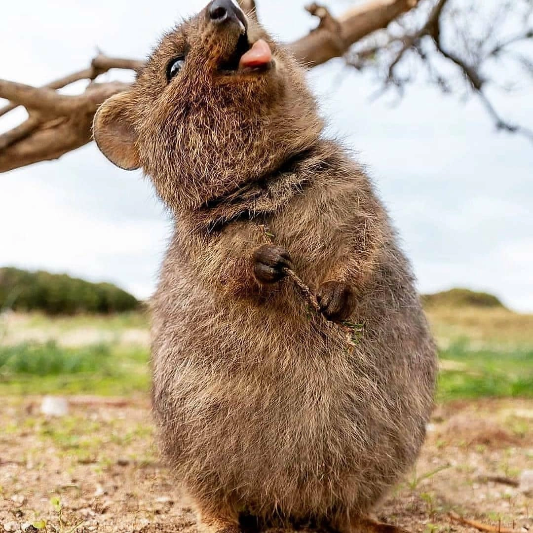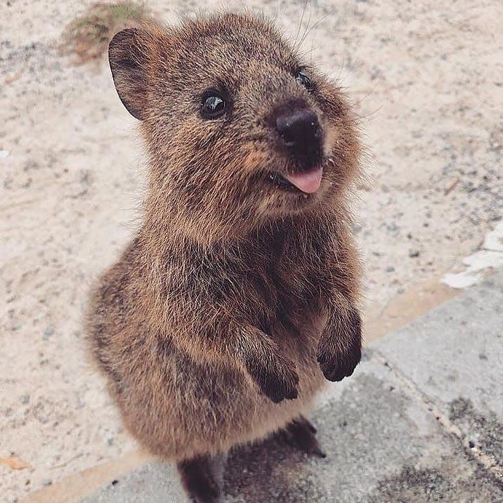 Квокка — это короткохвостый кенгуру, который, как, впрочем, и остальные кенгуру, обитает в Австралии. Квокки отличаются от своих крупных и длиннохвостых сородичей не только размером, но и забавной улыбкой на мордочке, благодаря которой эти зверьки кажутся невероятно милыми и приветливыми.