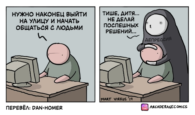 Эстонский художник Март Виркус создает комиксы, наполненные черным юмором, чтобы справиться с тревожностью и показать другим, что даже к самыми неприятным жизненным ситуациям стоит относиться позитивно.