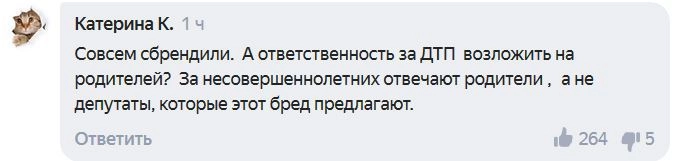 Другие считают, что отвечать за ДТП подростков придется родителям.