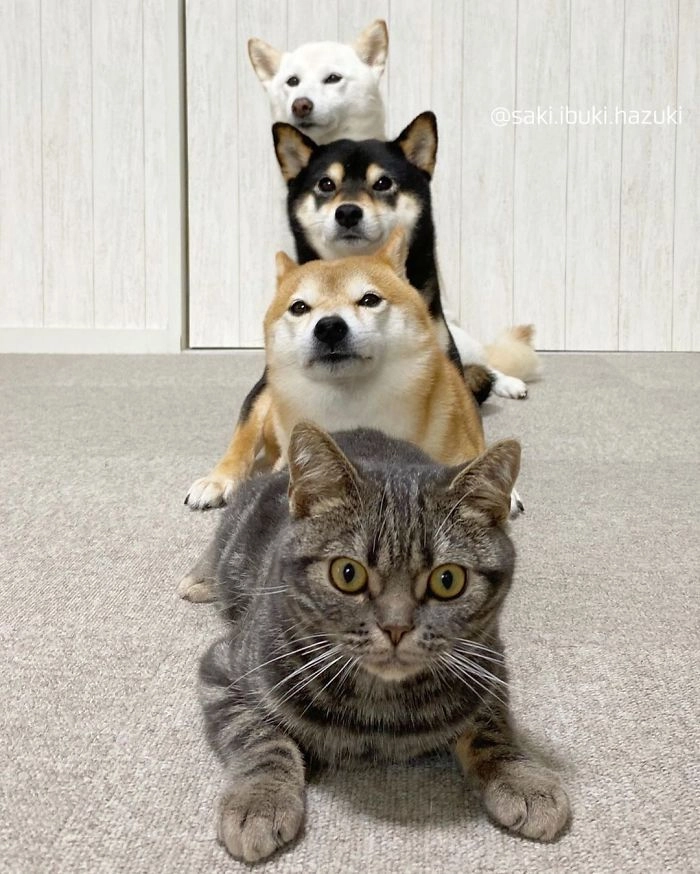 Часто люди, которые длительное время живут вместе, становятся похожи друг на друга во всем, начиная с привычек и заканчивая характером. Оказывается, что это правило распространяется и на братьев наших меньших. Так, кот по кличке Кики из Японии, около года назад ставший частью банды из трех сиба-ину, теперь считает себя одним из псов. Пушистый так быстро влился в собачью семью, что те даже не и заметили шпиона в своих рядах.