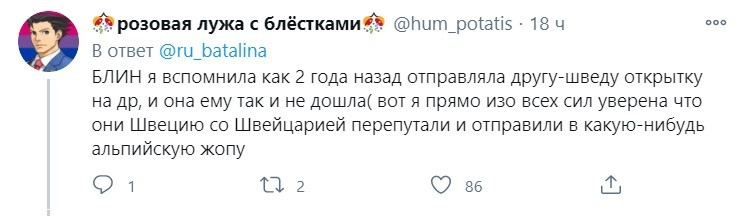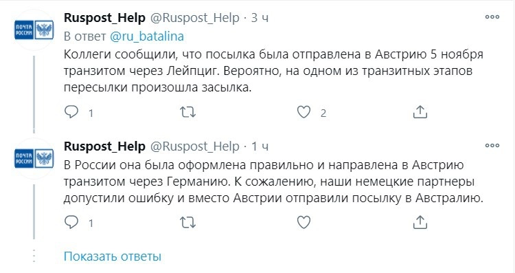 Пользовательница Twitter не знает, кто допустил эту досадную ошибку, но представитель почты России утверждает, что место назначения перепутали немецкие партнеры.