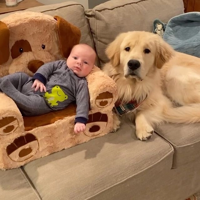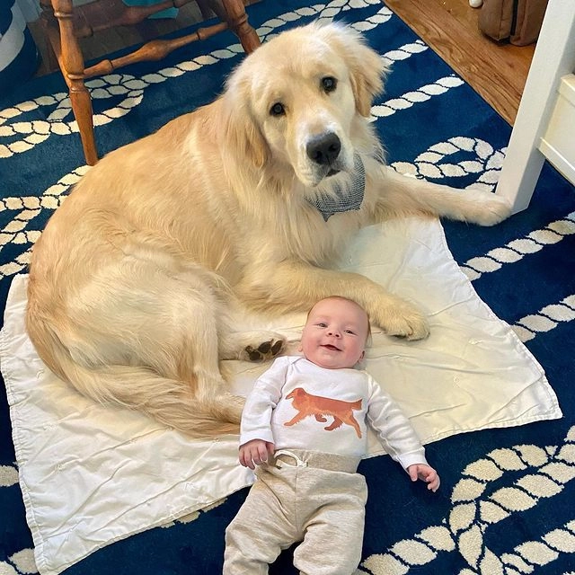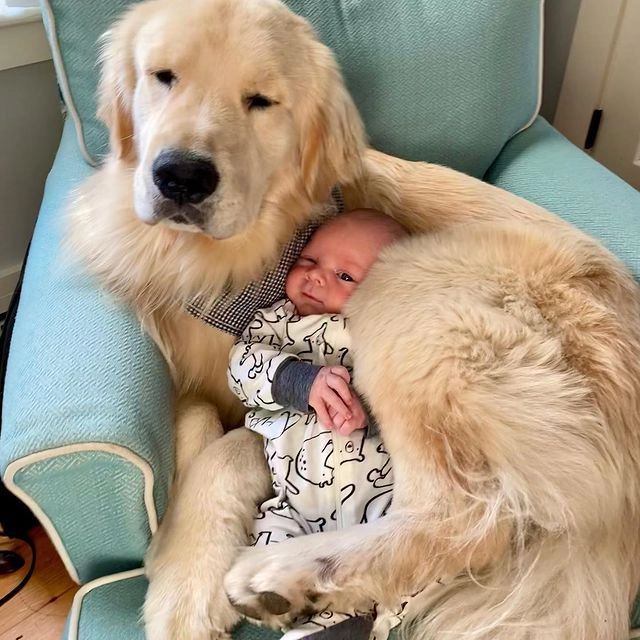 Супруги Паркс из Бостона, которые недавно стали родителями, даже не думали, что их золотистый ретривер по кличке Хинкли будет относиться к новорожденному с удивительной теплотой и заботой. Молодая мама рассказала, что поначалу Хинкли считал малыша Тедди новой игрушкой, с которой он может поиграть. Но вскоре пёс стал постоянным спутником ребенка: он ложился спать рядом, обнимал и оберегал его, как самая настоящая няня.