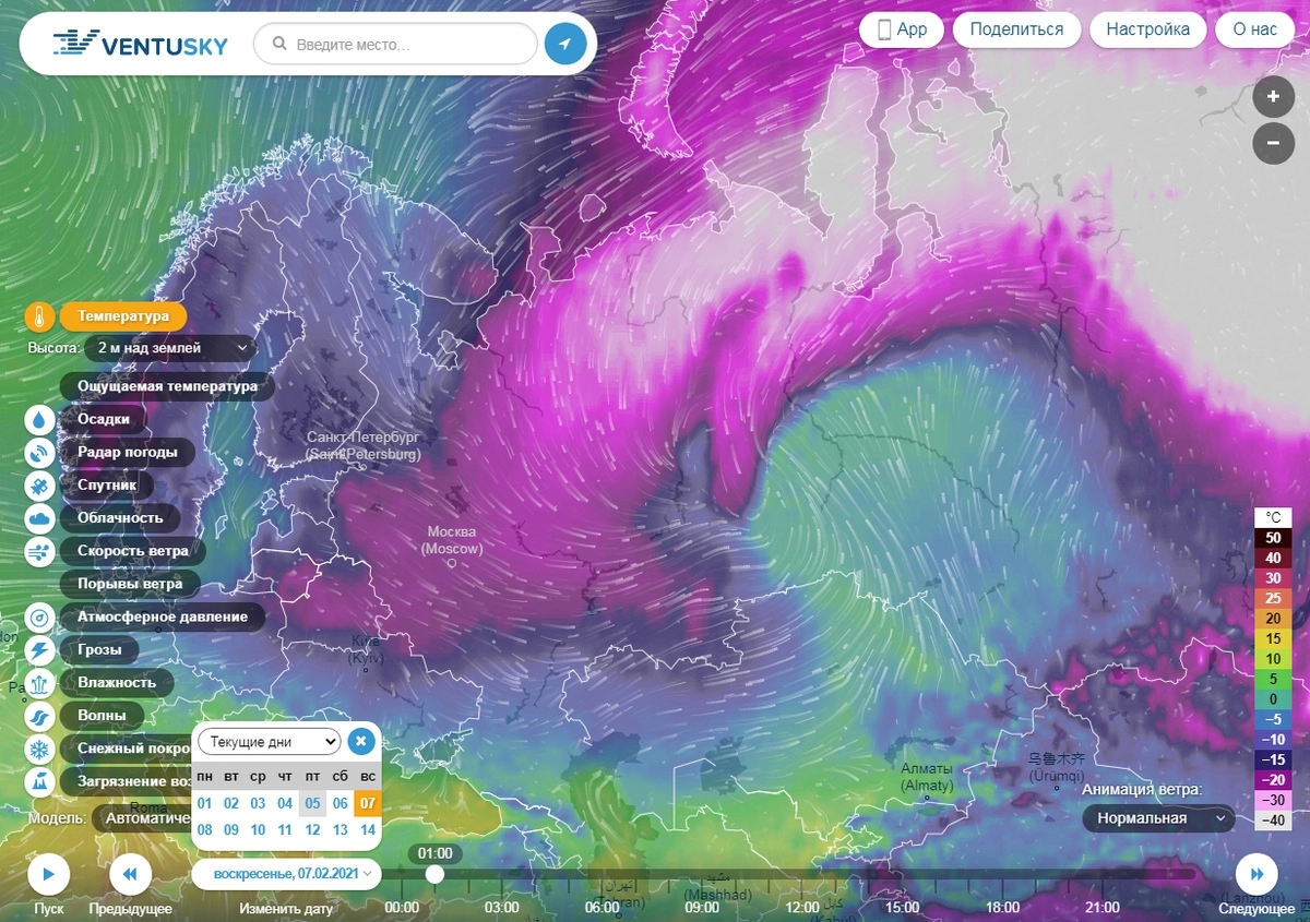 На территорию центральной части Европейской России движутся холодные арктические воздушные массы, подгоняемые мощным антициклоном на севере Азии. Аномальные морозы установятся в ночь на 8 февраля и продлятся до конца рабочей недели.