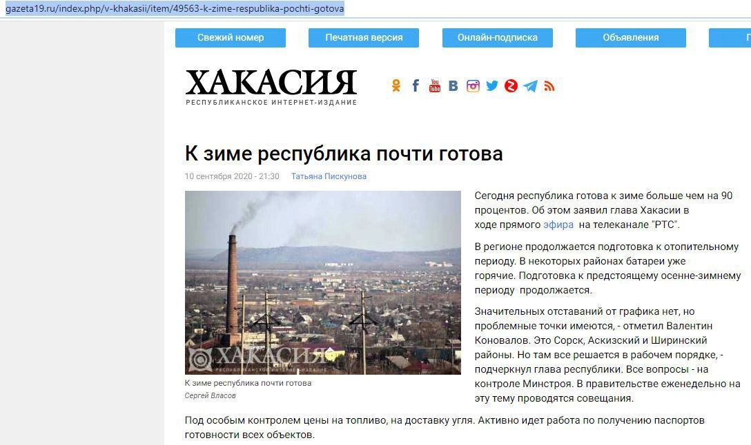 В текущей ситуации налицо и безответственное поведение собственника котельной. Каждый день в село выезжают специалисты Минстроя Хакасии, которые выдают персоналу ресурсоснабжающей организации рекомендации по наладке температурного режима, контролируют температуру в жилых домах и при выявлении нарушений штрафуют руководителя предприятия. Ресурсоснабжающая организация обязана не только восстановить нормативные параметры теплоснабжения, но и сделать потребителям коммунальных услуг перерасчет с 1 января. Главе Белого Яра необходимо строже контролировать работу котельной и отопительной системы села, а также оперативно реагировать на обращения жителей, — написал Коновалов.