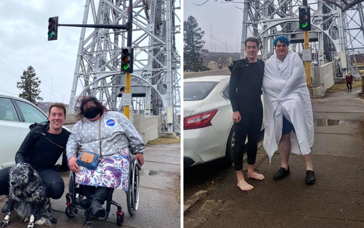 Парень из Дулута (Миннесота, США) по имени Дарби Воукс приехал на озеро Верхнее, чтобы заняться серфингом (в холодную погоду на этом озере очень сильные волны), когда к нему обратилась женщина в инвалидной коляске и попросила о помощи.