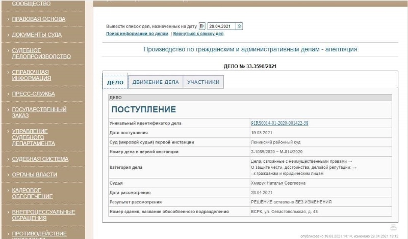 Рассмотрев апелляционную жалобу главврача Гаптракипова, верховный суд Крыма оставил решение суда первой инстанции без изменения. Дело вступило в законную силу 28 апреля 2021 года.