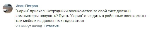 Не всем понравилось и то, что министр обороны проводил проверку без медицинской маски, в то время как сотрудники военкомата были в средствах индивидуальной защиты.