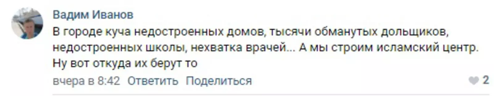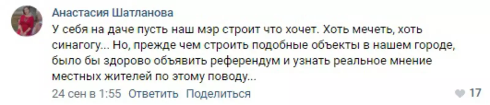 В соцсетях ступинцы утверждают, что практикующих мусульман в городе недостаточно, чтобы администрация ставила на первое место их нужды в ущерб общегородским проблемам — недостроенным домам и школам, нехватке врачей в поликлиниках. Да и строители, работающие на объекте, пользуются в Ступино скверной репутацией.
