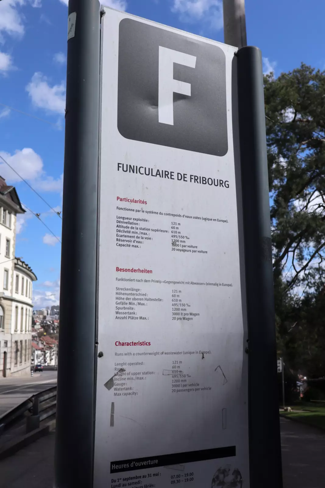 Построено это чудо инженерной мысли в 1899 году, более 120 лет назад. С 1996 по 1998 год нечистотный фуникулёр не работал из-за поломки. Сейчас фрибурский фуникулёр считается объектом культурного наследия!
