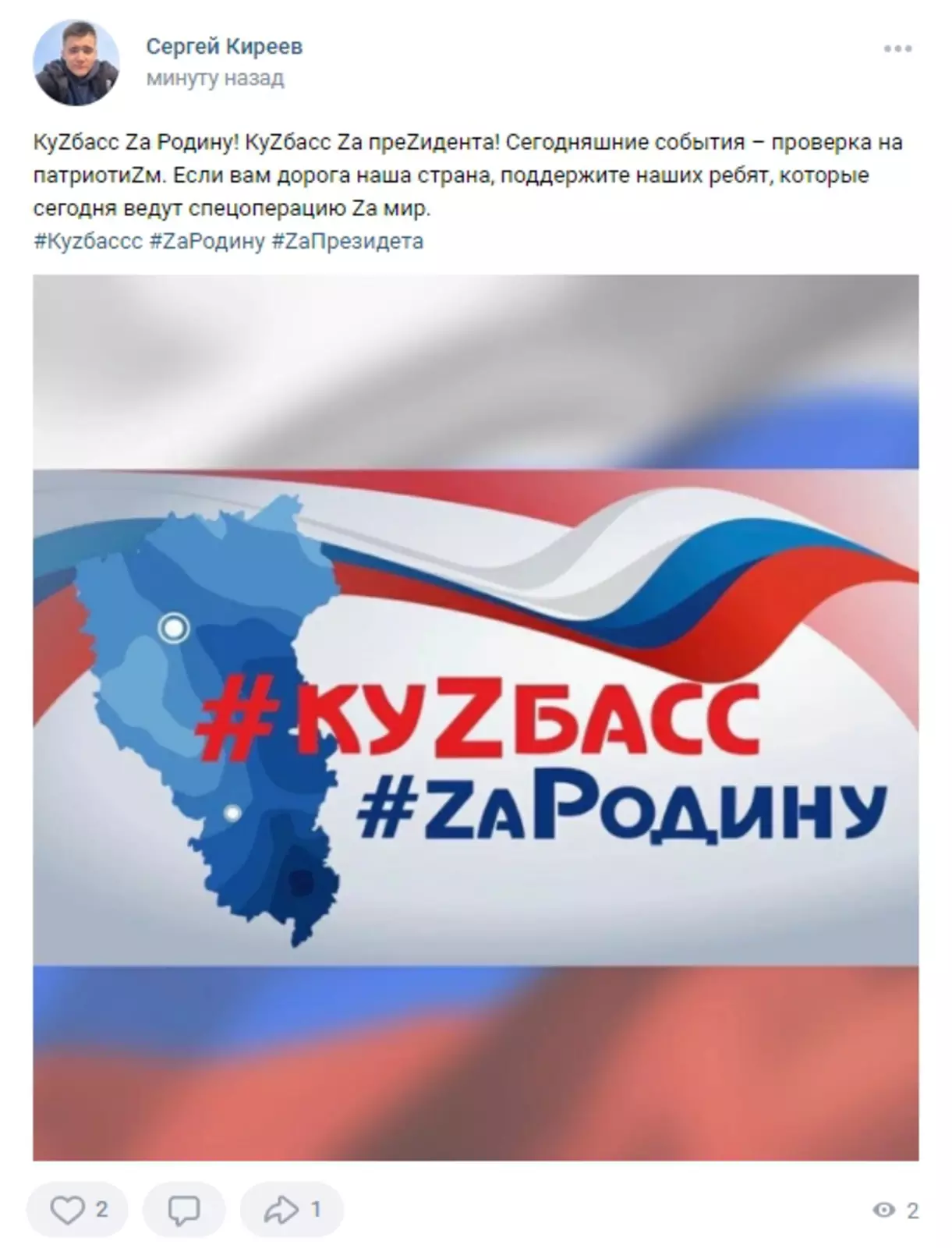 «Z — в первую очередь знак поддержки наших бойцов и символ солидарности нашего общества. КуZбасс — Zа Родину», — подчеркнул глава региона.