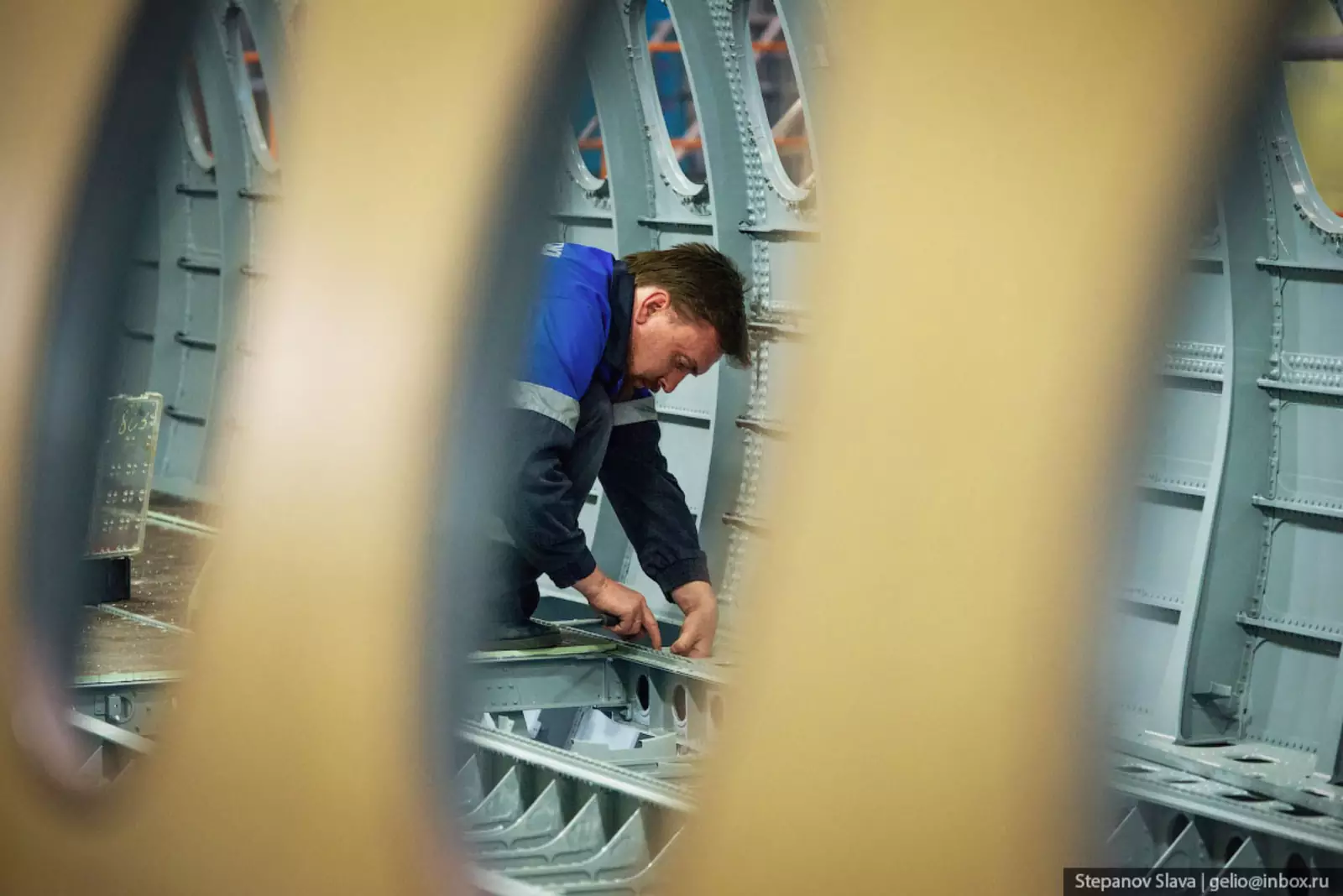 7. Цех сборки фюзеляжа (ЦСФ). Здесь производится стыковка готовых отсеков на стенде автоматической стыковки и установка крепежа по стыкам отсеков.
