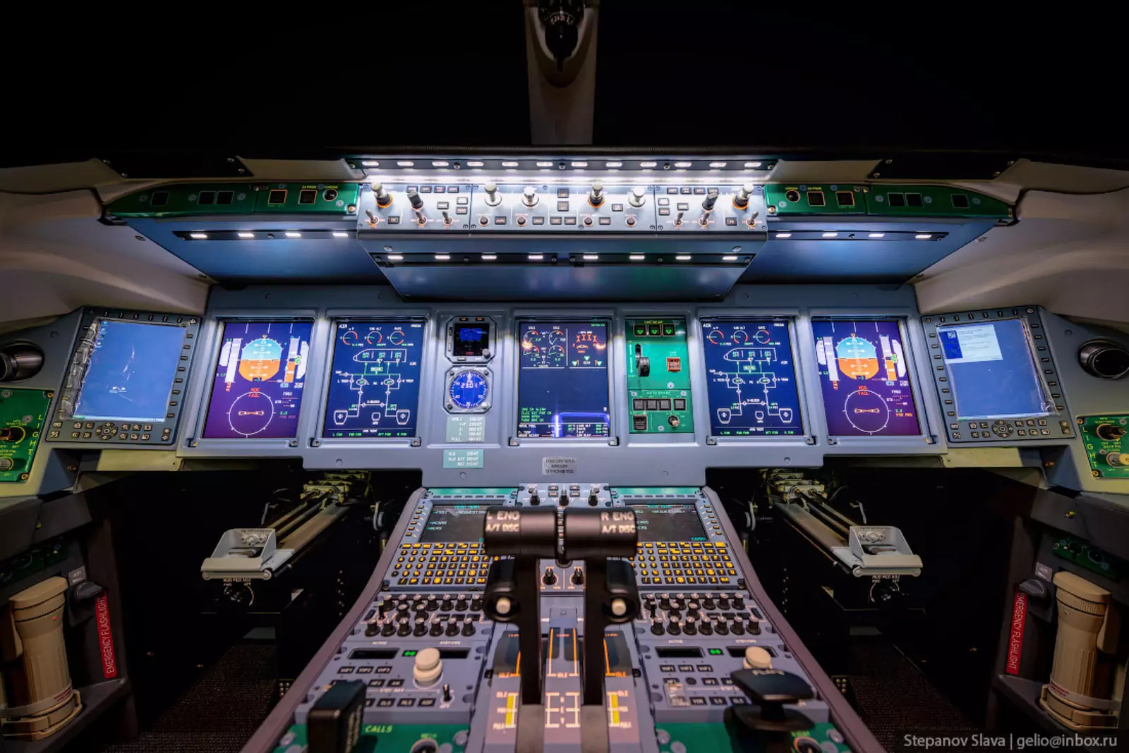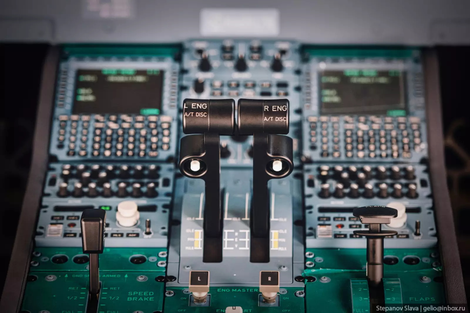 24. В управлении реализована концепция Human Centered Design — это позволило оптимизировать размещение рычагов управления и приборного оборудования. Теперь в случае внештатной ситуации завершить полёт сможет даже один пилот.