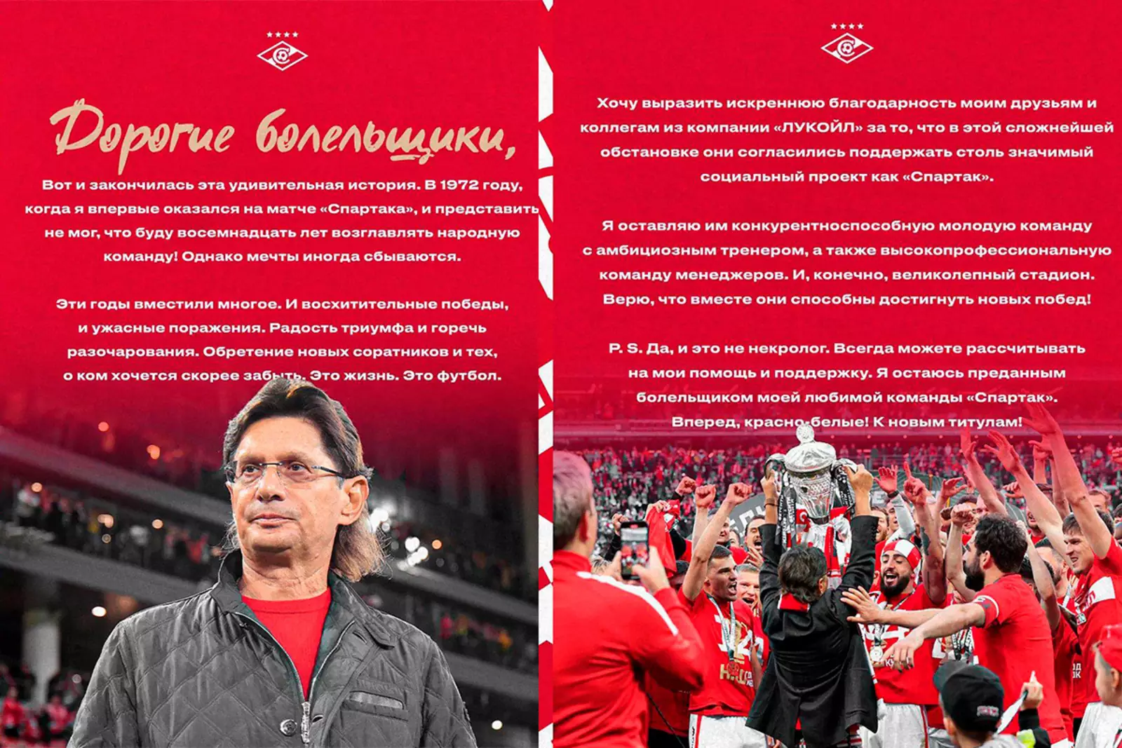 «В связи с выходом из состава акционеров клуба Леонид Федун слагает полномочия президента, члена и председателя совета директоров АО ФК „Спартак-Москва“ и не будет принимать участие в управлении клубом», — об этом сообщается в пресс-службе компании.