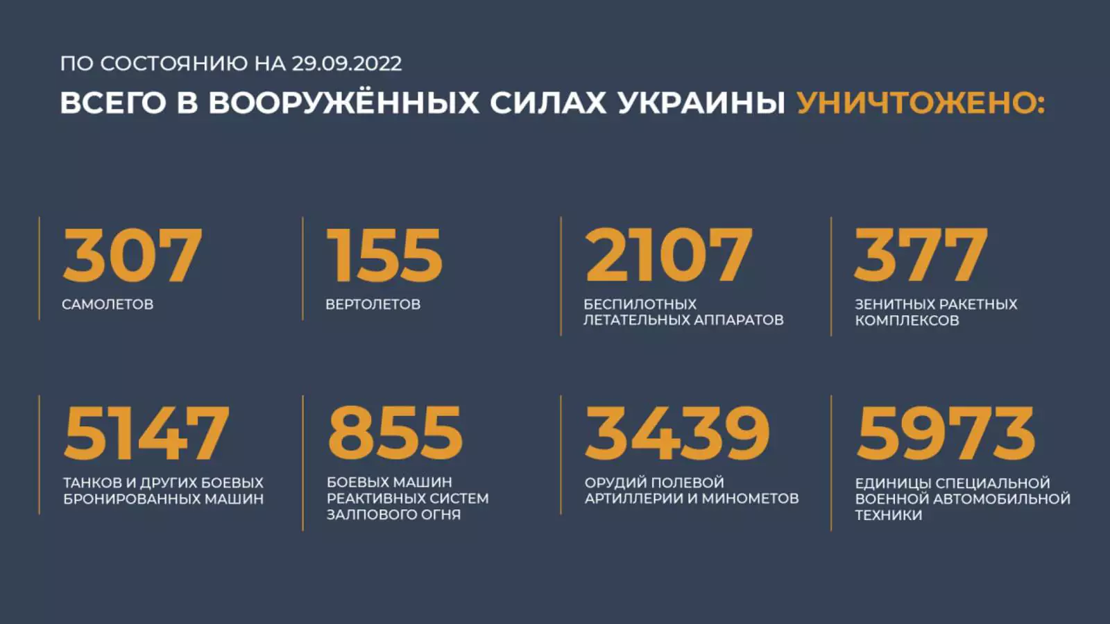 Оперативно-тактическая и армейская авиация, ракетные войска и артиллерия поразили, по словам представителя Минобороны, шесть пунктов управления ВСУ, 87 артиллерийских подразделений, реактивную батарею РСЗО HIMARS, батарею американских гаубиц М777, взвод крупнокалиберных орудий «Гиацинт», девять складов боеприпасов и ракетно-артиллерийского вооружения, радиолокационную станцию украинского зенитного ракетного комплекса «С-300».