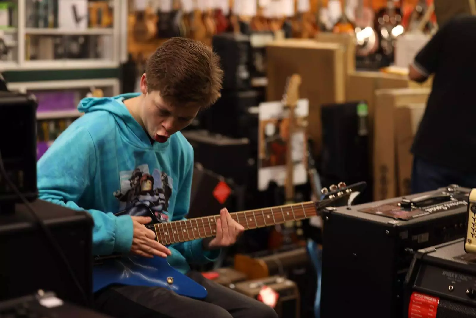 Незнакомец исполнил мечту юного музыканта, подарив ему новую электрогитару