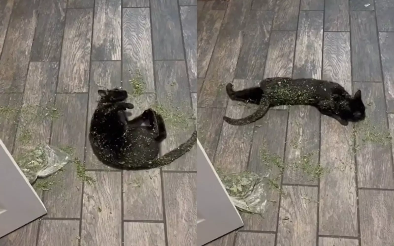 Пользовательница TikTok под ником bethany.ellen опубликовала видео со своим котом, который нашел пакет с кошачьей мятой, разорвал его и искупался в ароматной сушеной траве. Хозяйку до слез рассмешил этот пушистый наркоман, с головы до лап покрытый кошачьим котовником. Девушка не стала ругаться на котофея или наказывать его, а просто позволила ему и дальше валяться в мяте в свое удовольствие.