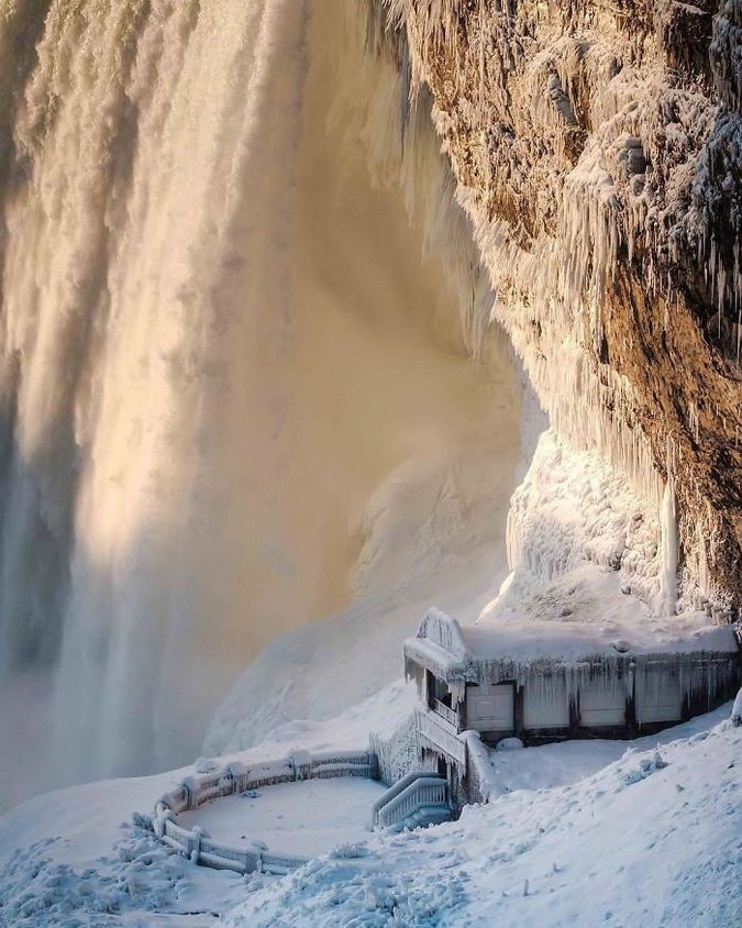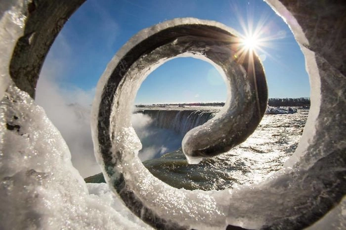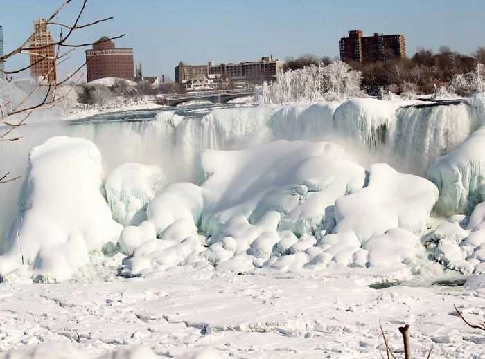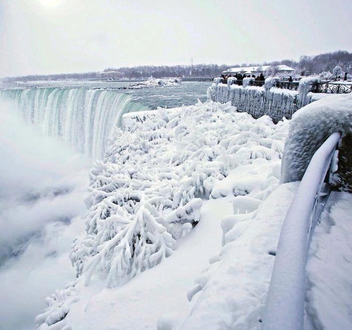 В этом году природа не устаёт преподносить нам сюрпризы. В центре России аномально холодное лето продолжилось аномально тёплой зимой. А в Канаде и северной части Америки под Новый год установилась рекордно низкая температура. Например, в районе реки Ниагара было зафиксировано -26 градусов по Цельсию, тогда как в обычные зимы температура здесь не опускается ниже 10 градусов мороза. Из-за этого Ниагарские водопады частично замёрзли и сформировали причудливые ледяные скульптуры. Это привлекло множество туристов со всех уголков мира, которые сделали прекрасные фотографии этого сказочного места.