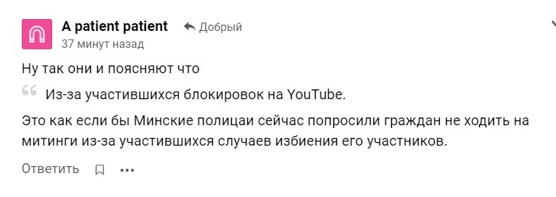 Пользователи Сети посчитали такую инициативу абсолютно бестолковой. Комментаторы убеждены, что никто по своей воле не станет уходить из YouTube, тем более достойно работающих российских видеохостингов на данный момент, по их мнению, просто нет.