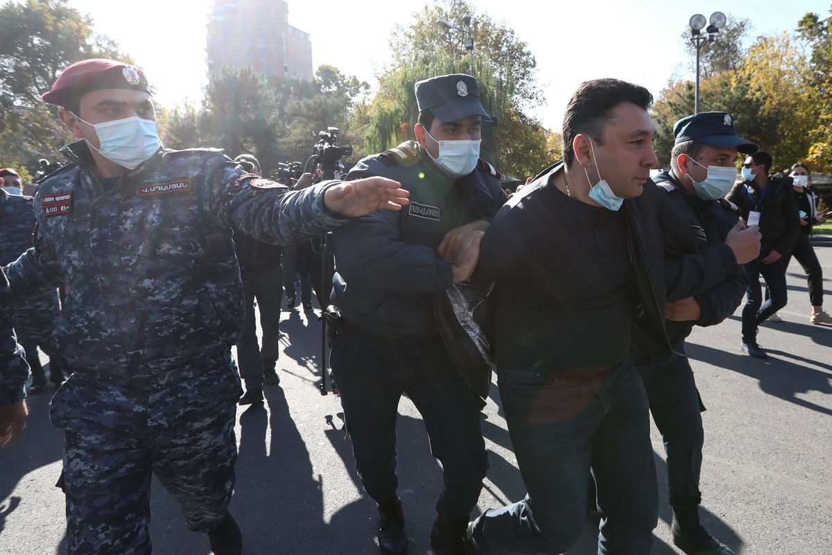 Армянские СМИ сообщают как минимум о двух десятках задержанных, включая депутатов парламента, что является нарушением закона о депутатской неприкосновенности. Среди задержанных — лидер самой крупной оппозиционной партии «Процветающая Армения» Гагик Царукян, бывший руководитель аппарата Нацсобрания Арсен Бабаян, члены «Республиканской партии Армении» и партии «Отечество».
