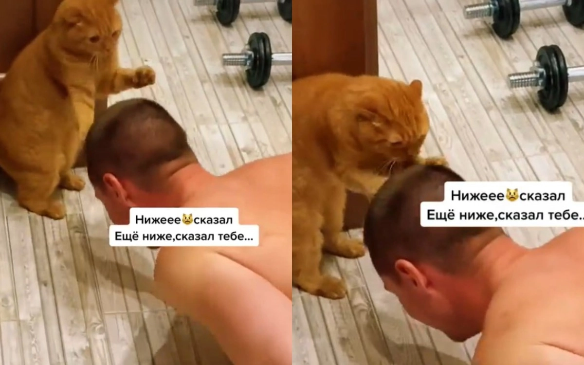 «Ниже опускайся, я сказал»: на видео попал суровый пушистый тренер