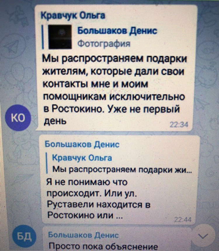 Конкуренты Кравчук сочли такой стиль ведения предвыборной кампании кампании как массовый подкуп, утверждает кандидат из Бутырского района Денис Большаков.