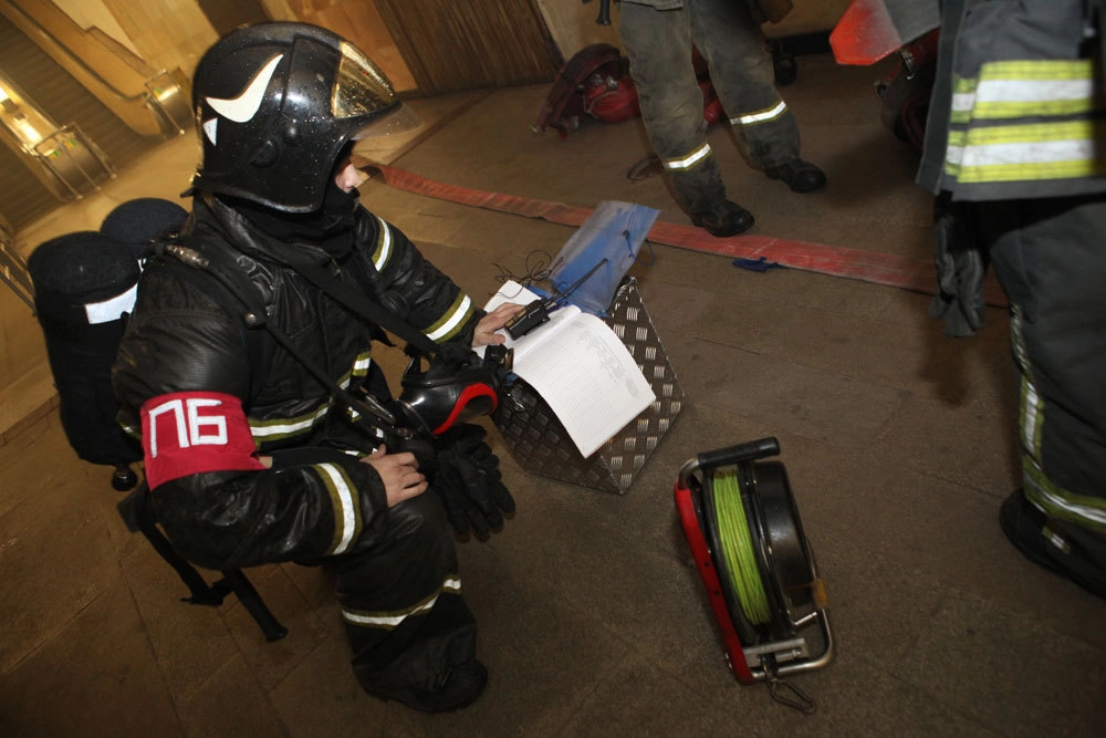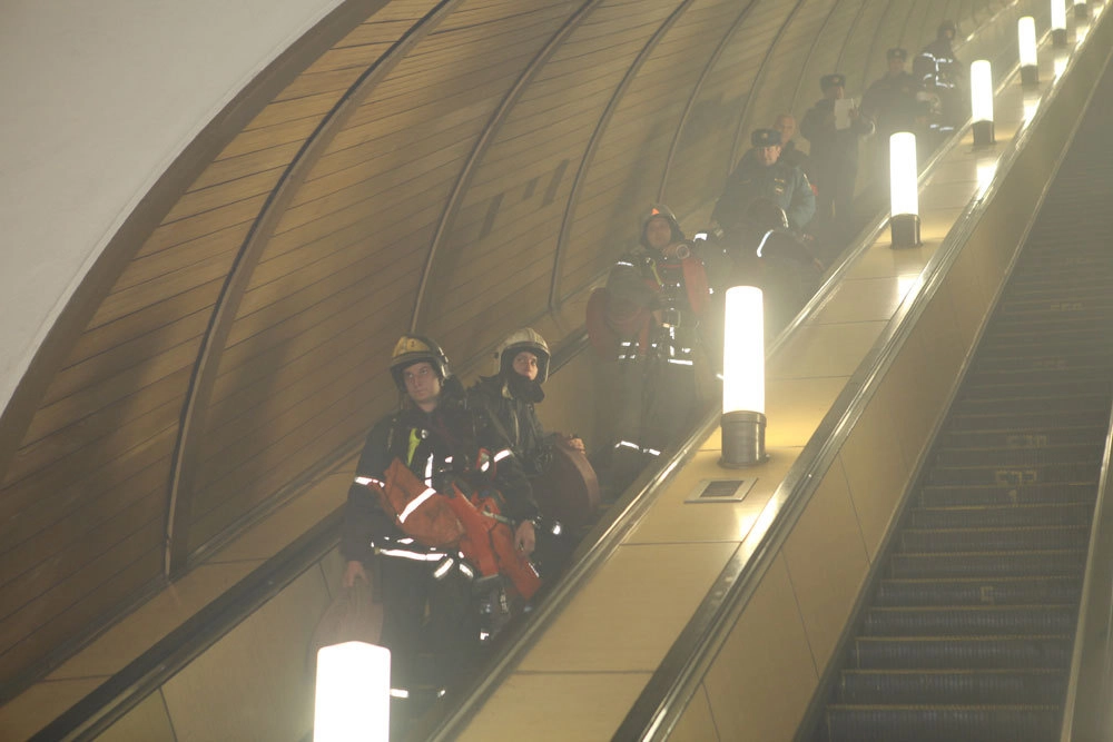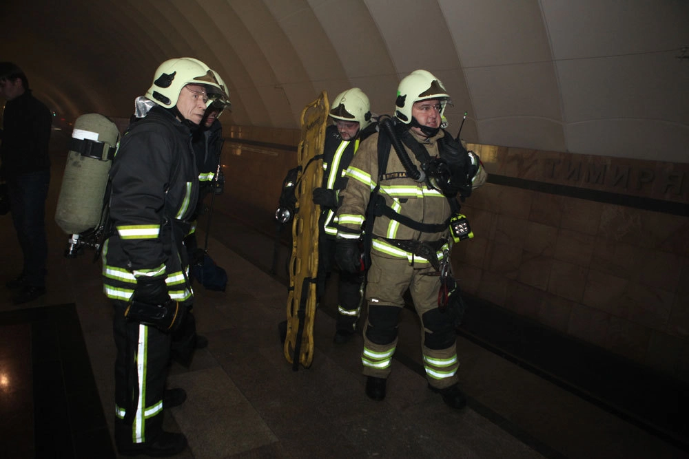 В рамках учений отрабатывалась ситуация возможного взрыва в последнем вагоне поезда при подъезде к станции "Тимирязевская".