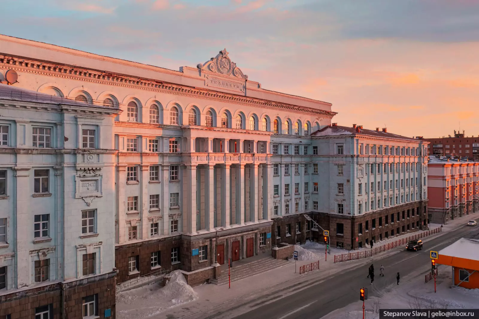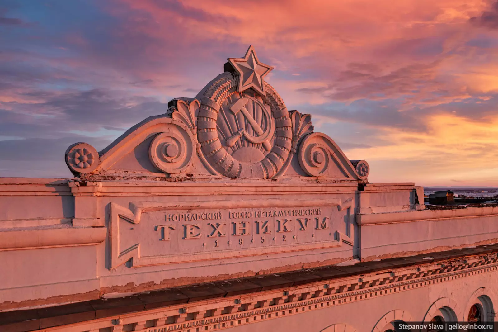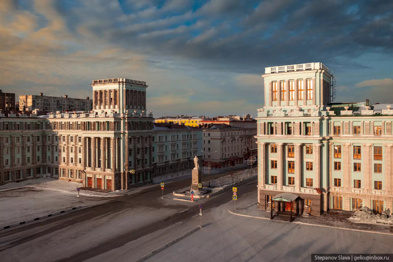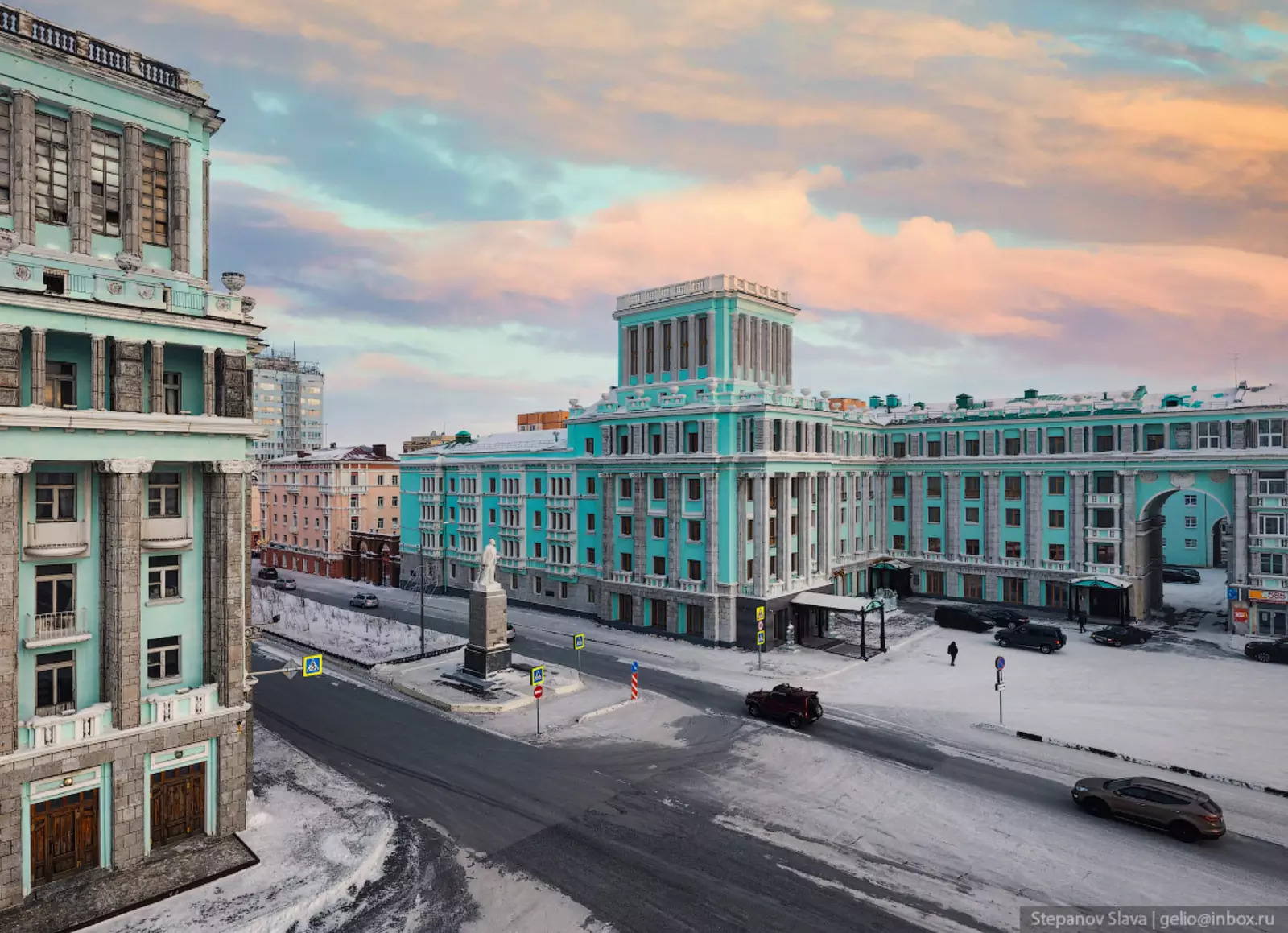 4. В советское время говорили, что Норильск — кусочек Ленинграда. И действительно, часть домов проектировали воспитанники ленинградской архитектурной школы. Ворота Норильска — это главный архитектурный ансамбль, практически лицо города. Один из домов полностью жилой, во втором находится гостиница «Полярная звезда».