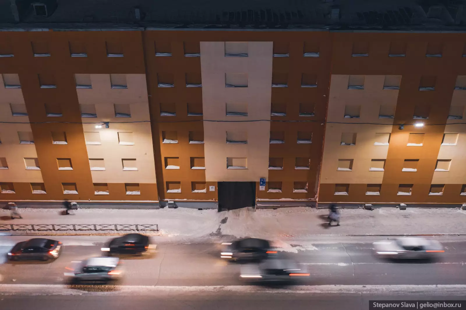 9. На Ленинском проспекте стоят сталинки, основной стиль — неоклассицизм. Архитекторы сначала хотели сделать улицы продуваемыми, чтобы сильный ветер помогал избавиться от снега. Но оказалось, что снега здесь слишком много и бороться с ним бессмысленно. Поэтому многие жилые дома и кварталы выполнены в виде замкнутых прямоугольников, которые защищают дворы от ветра.