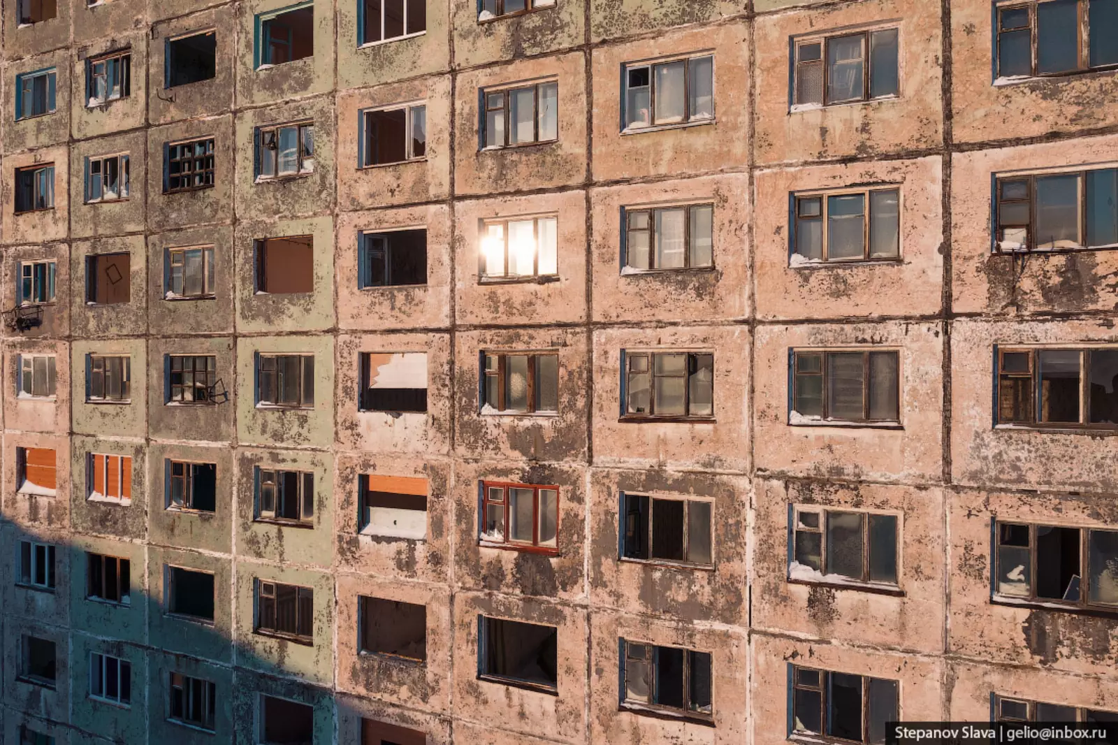 41. Некоторые дома в Норильске расселяют и демонтируют. Расселение не относится к теме заброшенных посёлков Севера, которые остаются после закрытия шахт, в Норильске это плановая работа по обновлению жилого фонда. Население здесь растёт примерно на 1000 человек в год.