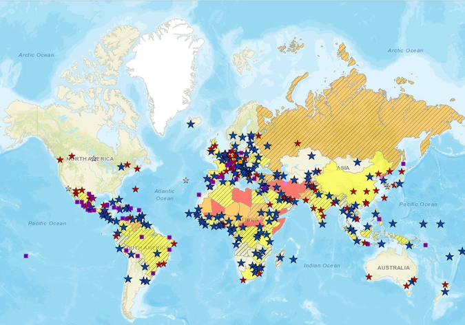 В страны первой категории американцы могут ездить без опаски. Это Канада, Швеция, Финляндия, Аргентина и некоторые другие государства. В странах второй группы (Украина, Франция, Испания, Бразилия и др.), окрашенных на карте в желтый цвет, следует соблюдать повышенную осторожность. Поездки в «оранжевые» страны ведомство рекомендует «пересмотреть» — помимо России, к ним относятся Турция, Венесуэла, Куба.
