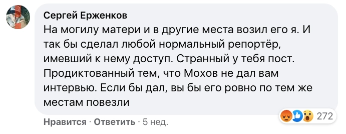 После потока гневных сообщений в адрес режиссера интервью с Моховым Ерженков наконец пошел ва-банк. Негодование юзеров он объяснил тем, что люди «ждали человека, чтобы врубить моральный камертон». А Монгайт работает на некомпетентного, по мнению Ерженкова, человека, который «в своей жизни не снял ни одного репортажа».