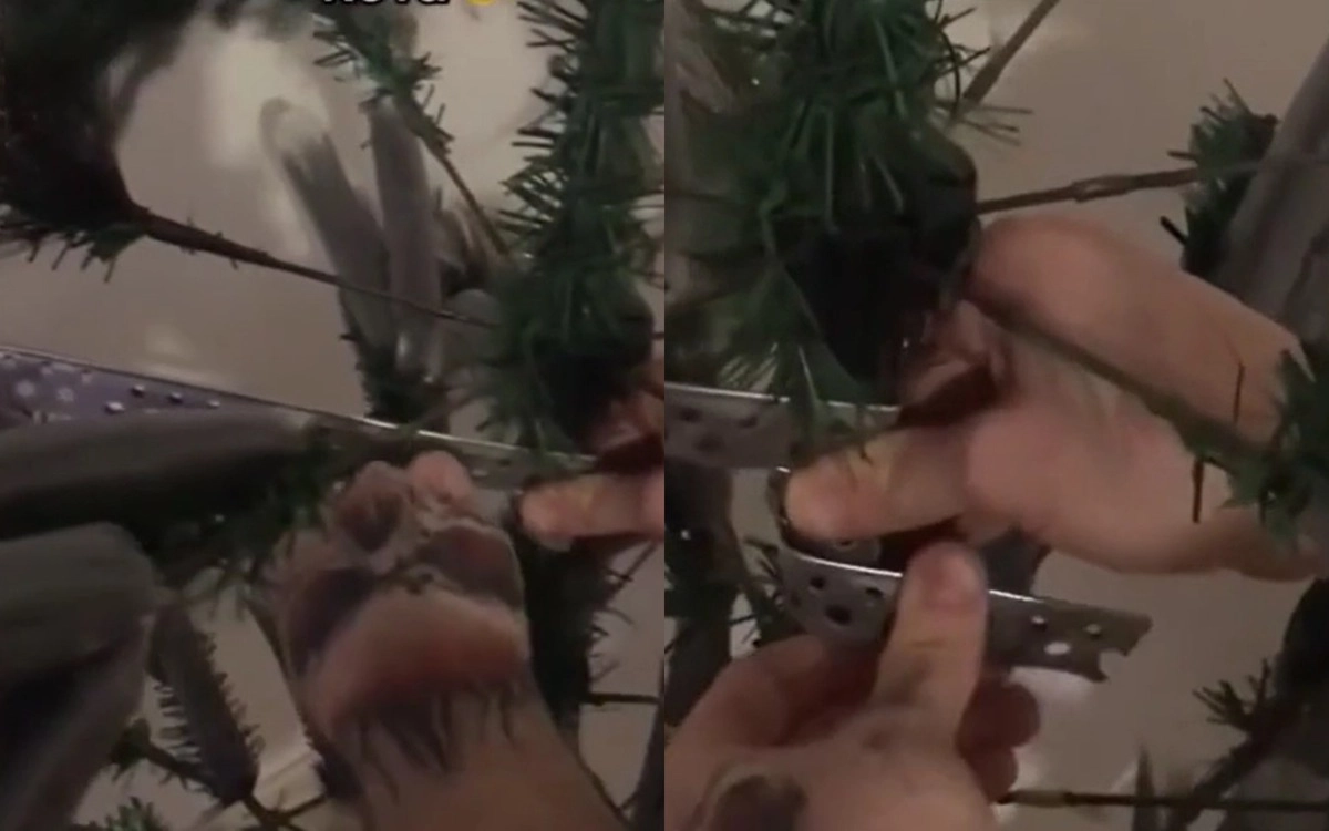 Новогодний лайфхак: парень показал, как крепить елку в доме с котами