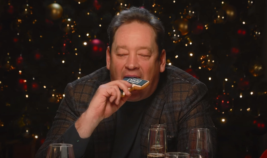 В конце ролика футболисты передают друг другу новогоднее печенье, один из игроков откусывает голову печенюшке в виде футбольного арбитра. Леонид Слуцкий при этом с аппетитом съедает печенье с надписью VAR — все знают о негативном отношении наставника «Рубина» к системе видеоповторов.