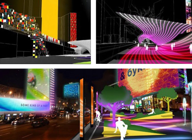 Проект также предполагает медиафасады, колонны и световые проекции.