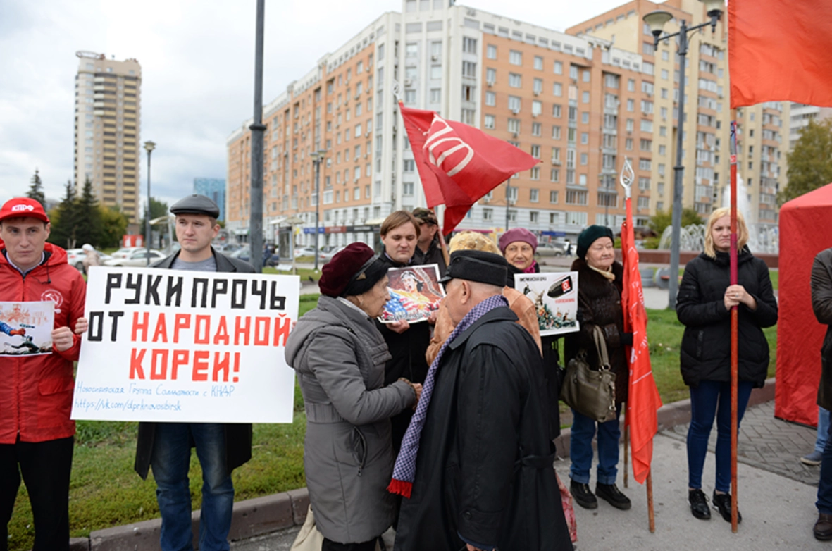 В Новосибирске прошел митинг солидарности с КНДР, организованный местными активистами КПРФ. Люди держали в руках северокорейские флаги, портреты Ким Чен Ына и плакаты с антиамериканскими лозунгами.