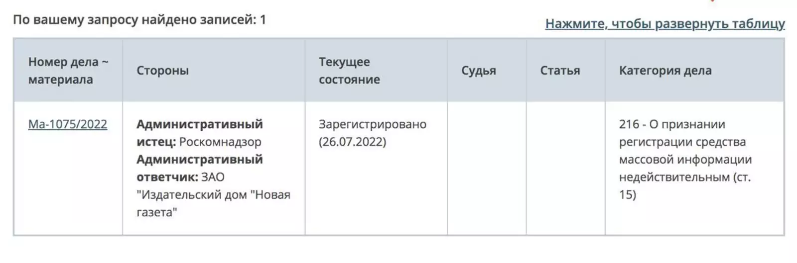 Ранее Роскомнадзор потребовал через суд отозвать лицензию печатной версии «Новой газеты», поскольку издание якобы не предоставило устав редакции в обозначенный в законе о СМИ срок.