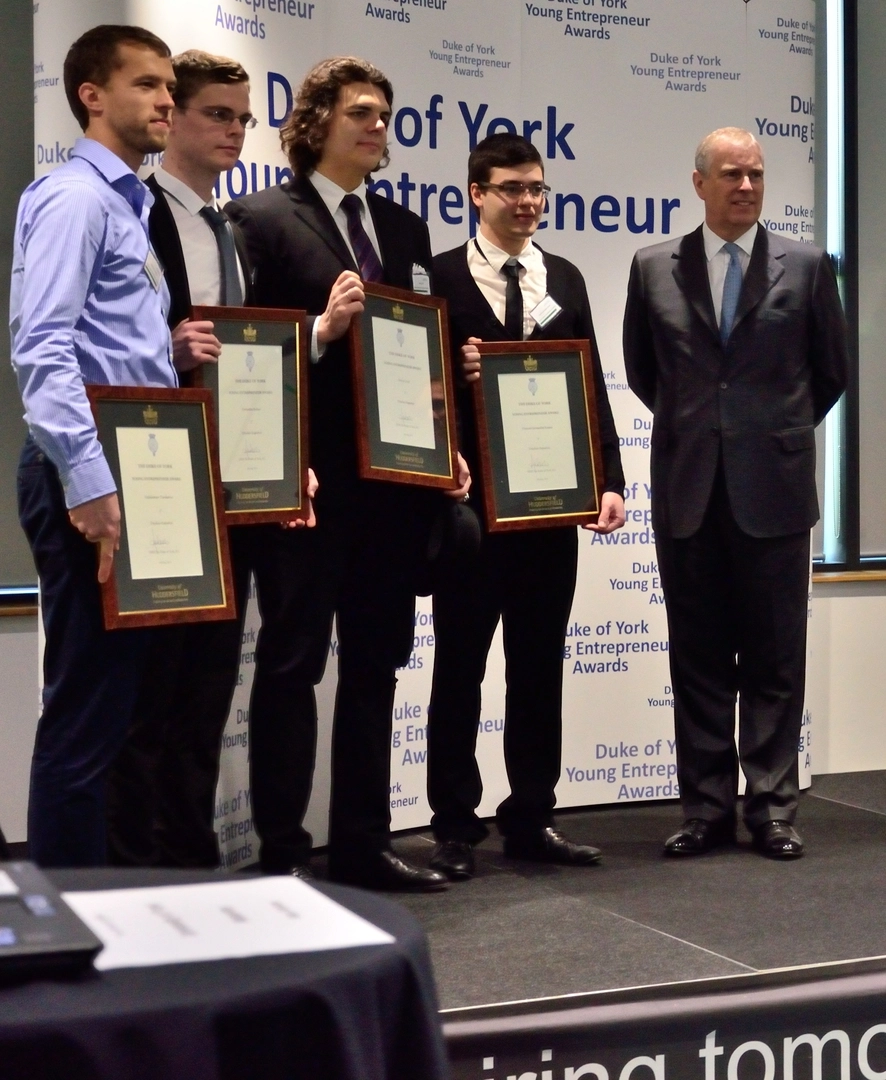 *8ого мая ребятам лично вручил награду член королевской семьи- принц Эндрю за их перспективную и оригенальную идею.