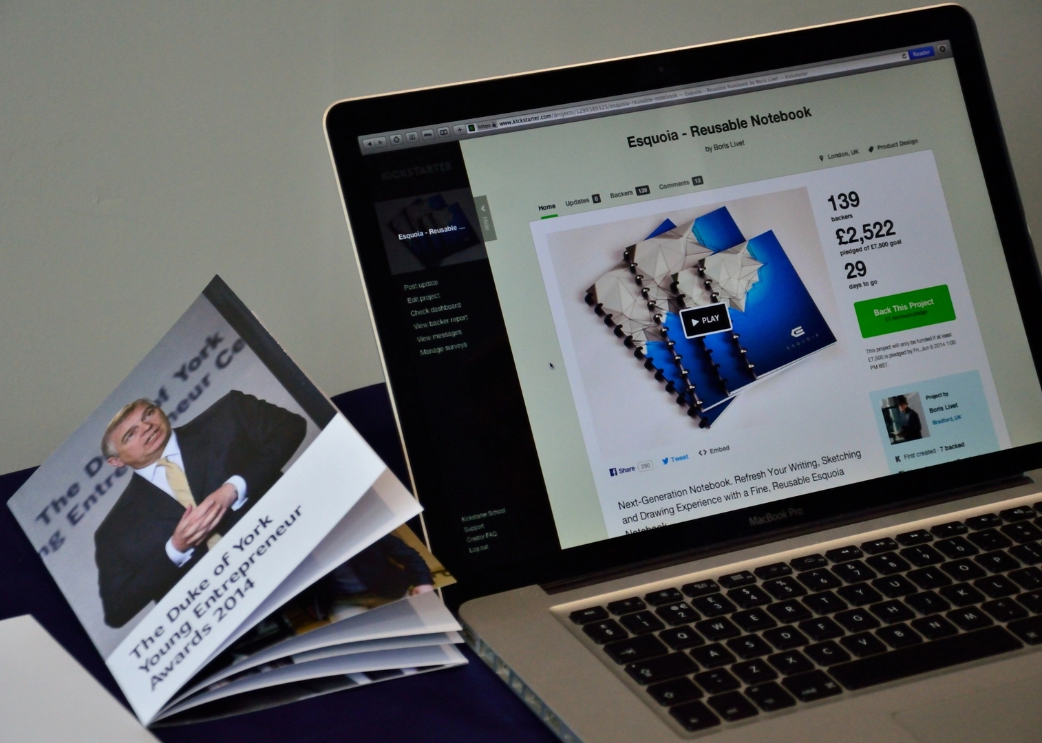 Создатели многоразовой тетради Esquoia учатся в Университет Брэдфорда в Англии. Свою идею они развивают в бизнес центре университета, который помогает улучшать и развивать им предпринемательские способности. В каждом году университеты номинируют лучших стедентов-предпринемателей и их команду на награду Принца Эндрю, который организовал этот конкурс, чтобы стимулировать и развивать студентов.