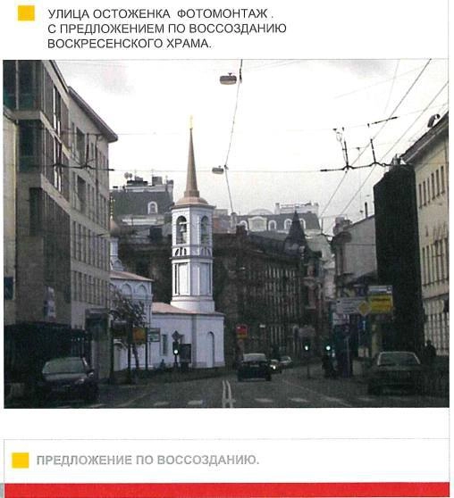 На Остоженке ситуация иная. Храм планируется выстроить очень большой. Кроме того, на эту территорию ранее был разработан замечательный проект, который не предполагал строительства новодела, а раскрывал фундаменты старинного разрушенного храма, сохранял сквер и реставрировал почти разрушенные палаты за сквером.