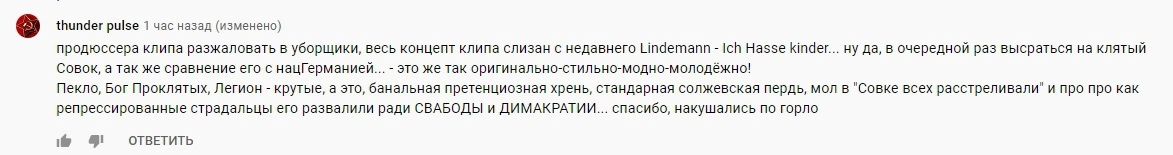 Но многие обнаружили в нем и плохо скрытый политический смысл. В комментариях было сломано немало копий в спорах о том, против кого направлена песня «Би-2»: против действующей власти в России или их родной Белоруссии — или же против тех, кто с ней борется?
