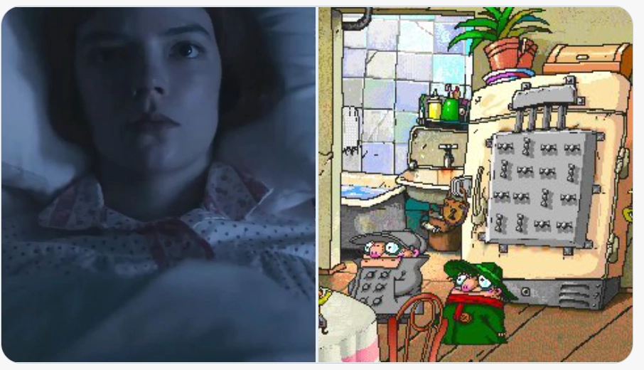 В социальных сетях зародился новый мем — героиня сериала «Ход королевы» Бет Хармон лежит на кровати под воздействием наркотиков и смотрит в потолок? Но что же она может там увидеть? Да всё что угодно!