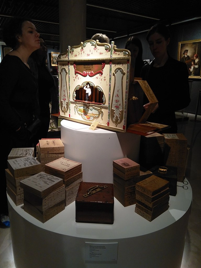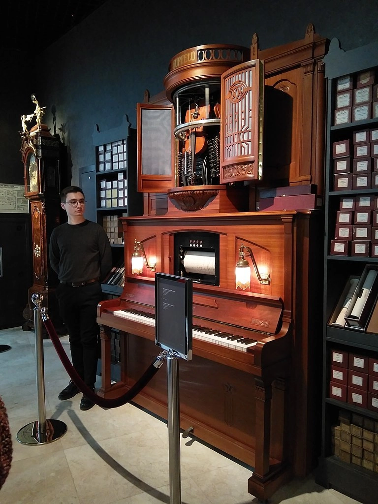 Экскурсовод рассказала, что подобные инструменты не только проигрывали музыку, но и наоборот, могли ее записывать, то есть пианист садится за инструмент, играет, а на бумаге записывается его игра. Сохранились записи подобного рода, например, от Стравинского. И в коллекции музея они есть, потрясающе.