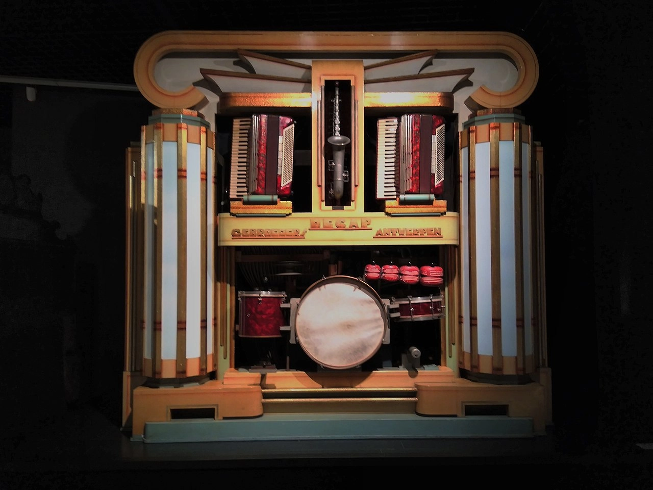 Экспозиция — это история музыки, или, вернее, история звукозаписи и звуковоспроизведения. На фото -- большой ярмарочный орган, который воспроизводил музыку по специальным «перфокартам».
