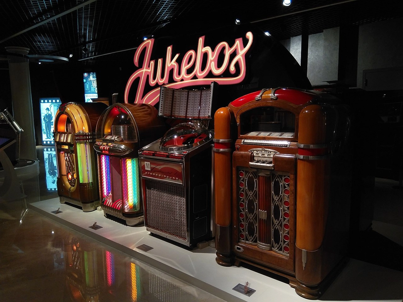 А это те самые знаменитые музыкальные автоматы, jukebox, которые за монетку ставили тебе пластинку с нужной песней, только кнопку нажми.
