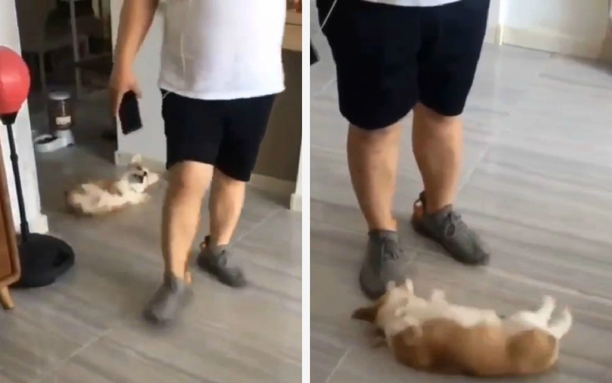Песики — те еще любители упрашивать хозяев, уделить им побольше внимания. Например, маленького корги из этого ролика хлебом не корми, дай разлечься кверху лапками, чтобы ему почесали пузико. Куда бы ни пошел его хозяин и чем бы он ни был занят, пушистый рыжий животик тут же окажется поблизости в ожидании почесушек.
