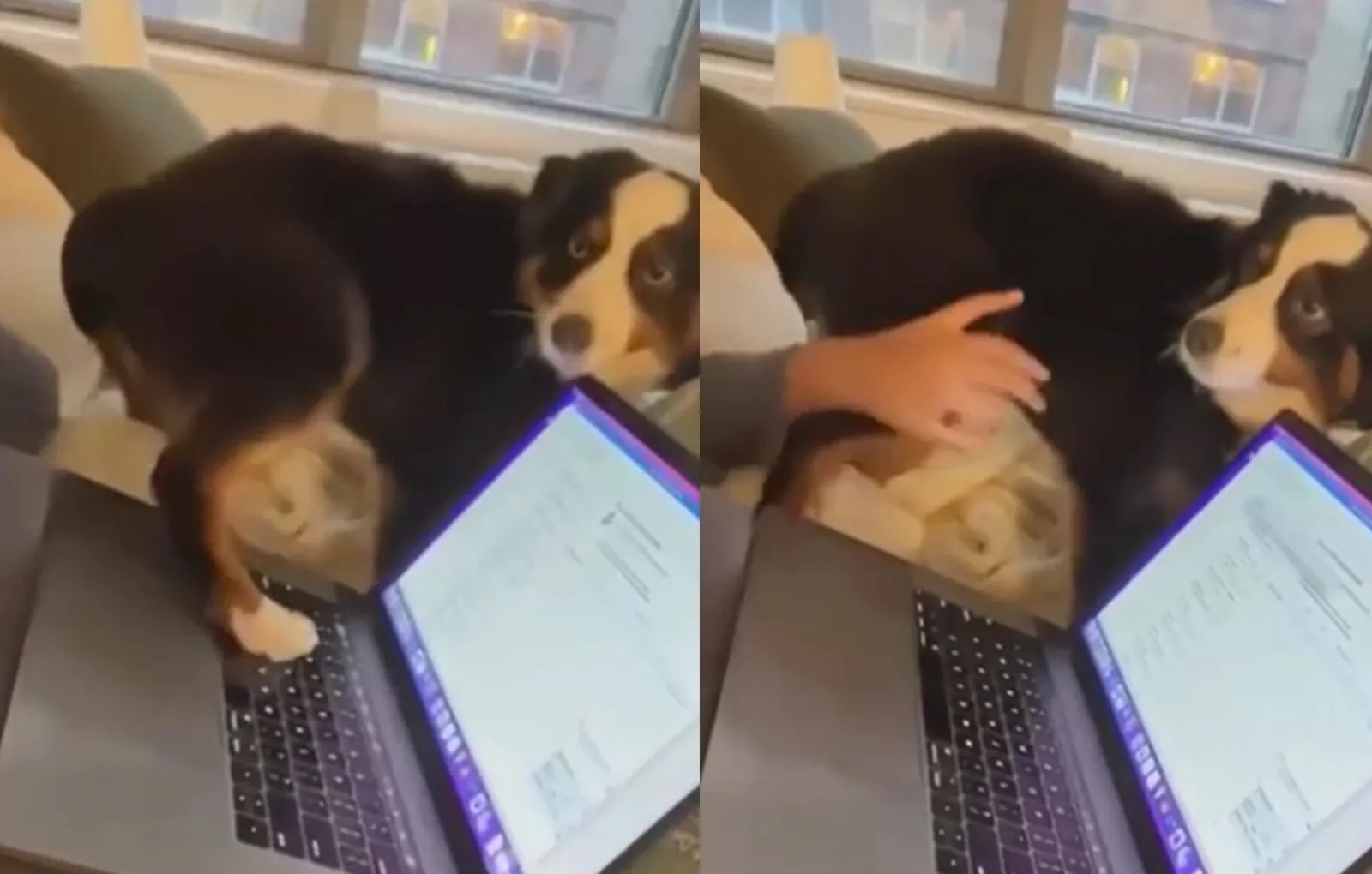 «Ну поиграй со мной!»: пёсик борется за внимание хозяйки с ее ноутбуком